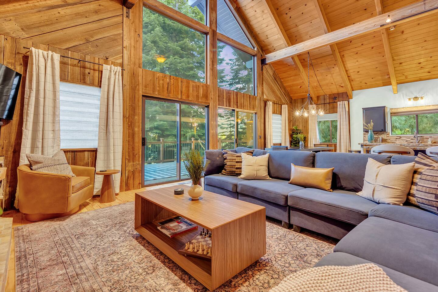 Welcome to The Ridge at Lake Almanor — a stunning A-frame retreat nestled among the pines, blending rustic charm with modern comforts. Located just minutes from the lake, this serene getaway is perfect for families, couples, or friends looking to unwind, explore, and reconnect. Golfers will love being steps from Bailey Creek Golf Course and the Lake Almanor Country Club, plus just minutes away from the scenic Lake Almanor West Golf Course. Walk to the lake, tee off with mountain views, and unwind under the stars. Bailey Creek and Lake Almanor Country Club are both roughly 0.7 mi away, and Almanor West is just ~5 mi—perfect for a multi‑course weekend getaway ✨ What You’ll Love: • Soaring A-frame windows with forest views • Cozy wood interiors and modern design touches • Private hot tub under the stars • Relaxing sauna — the perfect après-lake activity • Spacious deck with BBQ and outdoor dining • Fire pit area with Adirondack chairs for s’mores and storytelling • Fully equipped kitchen + high-speed Wi-Fi • Minutes to boating, hiking, fishing, and charming Chester *Central heating/air *Game Lounge with poker table, video games, pool table *Desk area for when work won't stop calling you *Large parking area and turn-around loop for boat or RV *just a short walk or drive to lake access, beaches, playground, pickleball courts, bocce ball, and scenic hiking trails. 🛌 Sleeping Arrangements: Comfortably appointed bedrooms with plush bedding and plenty of natural light. (2 King beds, 2 queen beds in bedroom #2, and 1 queen bed in the loft area) 📍 The Location: Tucked in a quiet part of Lake Almanor, you’re just a short walk or drive to lake access, beaches, and scenic hiking trails. Grab a coffee in town or spend the day out on the water—then come home to peace, pine trees, and crackling fires. Whether you're chasing mountain air or lakeside memories, The Ridge is your cozy-chic cabin escape. 🗓 Book your stay today and experience Lake Almanor at its finest!